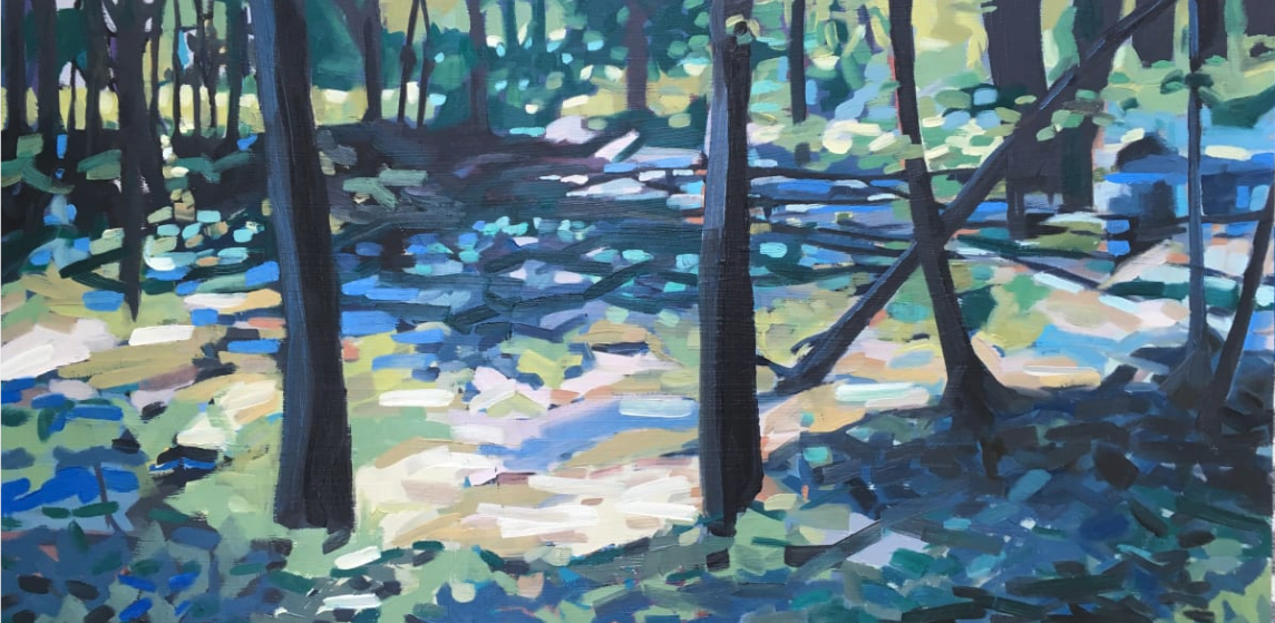 Kim Stewart earned a BFA with a painting concentration at the University of Massachusetts, Amherst. She studied with the incredible colorist, John Roy, student of Josef Albers. Abstract landscapes in acrylic have always been her passion and work she comes back to again and again at different stages of her career. Inspired by real environments, energized by fantastical elements and stunning color, her paintings add a vibrancy and positivity to any space.